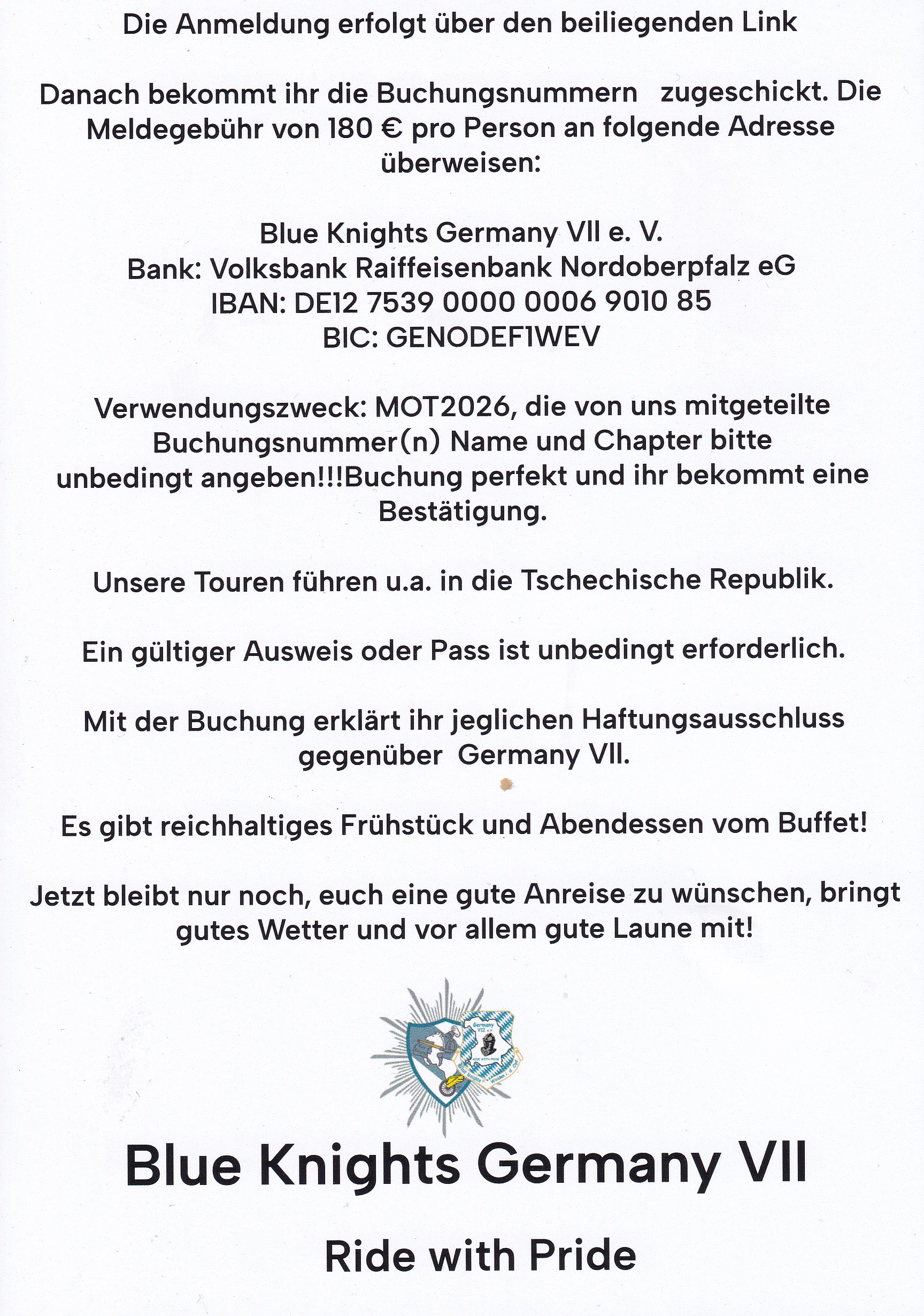 § Kontonummer Blue Knights Sweden I (Nordea): PG 88 71 57 -6
